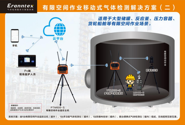 針對(duì)大型儲(chǔ)罐、反應(yīng)釜、貨輪船艙等有限空間的高風(fēng)險(xiǎn)作業(yè)場(chǎng)景,逸云天打造了集成多項(xiàng)前沿技術(shù)的移動(dòng)式檢測(cè)方案。無(wú)論是復(fù)雜密閉環(huán)境中的氣體異常,還是作業(yè)人員的實(shí)時(shí)狀態(tài),都能被精準(zhǔn)捕捉并及時(shí)反饋,從源頭降低意外風(fēng)險(xiǎn),為受限空間作業(yè)提供全流程安全保障。