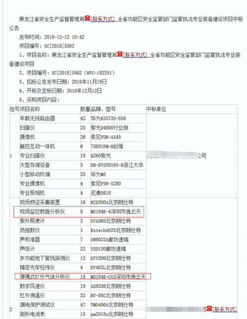 近日,深圳市逸云天電子有限公司分別接到河南省安全生產(chǎn)監(jiān)督管理局與黑龍江省安全生產(chǎn)監(jiān)督管理局的兩份中標(biāo)通知,成功中標(biāo)河南省安全生產(chǎn)管理2018年安全監(jiān)管執(zhí)法設(shè)備建設(shè)項(xiàng)目中央基建投資采購(gòu)項(xiàng)目(采購(gòu)編號(hào):豫才招標(biāo)采購(gòu)-2018-2033)與黑龍江省安全生產(chǎn)監(jiān)督管理局全省功能區(qū)安全監(jiān)管部門監(jiān)管執(zhí)法專業(yè)裝備建設(shè)項(xiàng)目(項(xiàng)目編號(hào):sc[201815502(Hrc-182351)。
