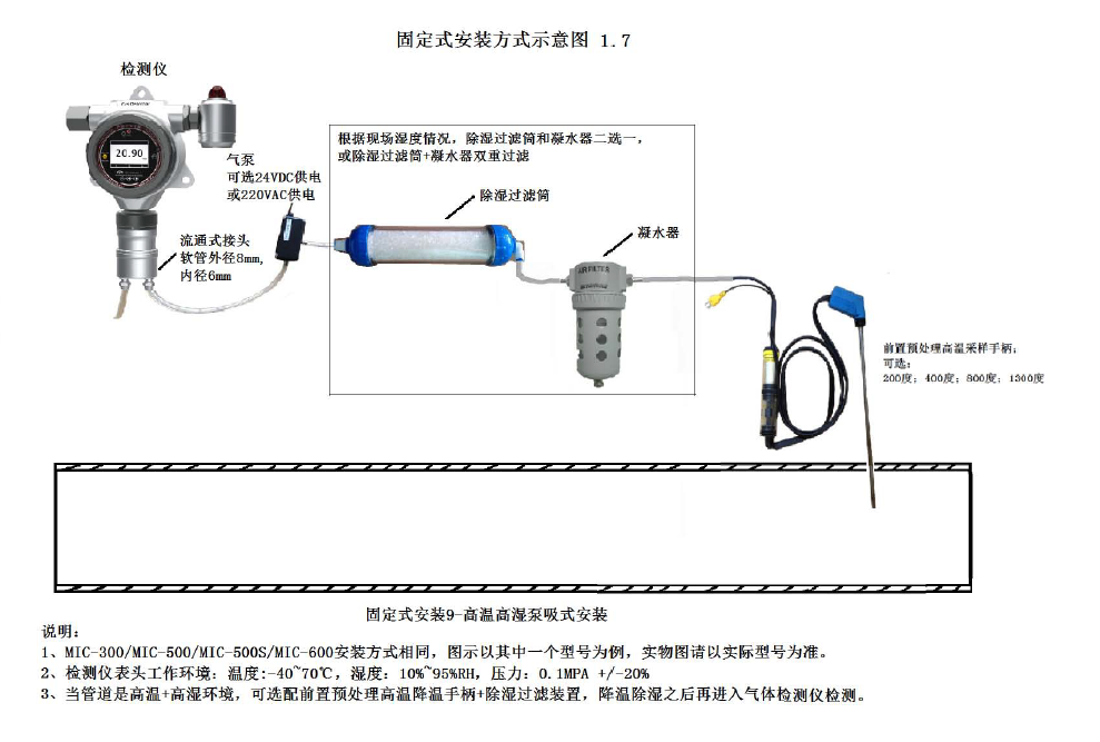 采樣單元采集現(xiàn)場(chǎng)的被測(cè)氣體,預(yù)處理單元對(duì)氣體進(jìn)行除濕、過濾粉塵,并將被測(cè)氣體的濕度恒定在一定范圍,處理后的氣體接入我司MIC-500-CO檢測(cè)儀(配流通接頭)進(jìn)氣口,進(jìn)行實(shí)時(shí)監(jiān)測(cè)并顯示在儀器上,并通過信號(hào)接口將數(shù)據(jù)進(jìn)行傳輸?shù)娇蛻舻谋O(jiān)測(cè)系統(tǒng)進(jìn)行數(shù)據(jù)監(jiān)控。