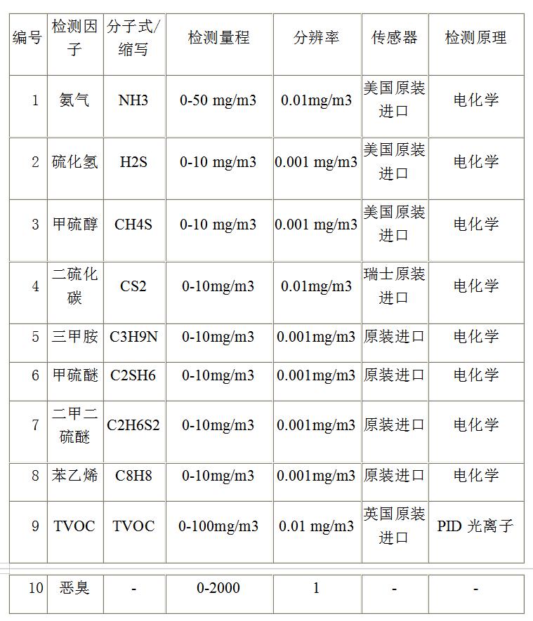 TH-2000-OU惡臭在線監(jiān)測(cè)系可同時(shí)監(jiān)測(cè)《惡臭污染物排放標(biāo)準(zhǔn)(GB14554-1993)》規(guī)定的控制惡臭物質(zhì)包括臭氣在內(nèi)的九種指標(biāo)(氨氣、三甲胺、硫化氫、甲硫醇、甲硫醚、二甲二硫、二硫化碳、苯乙烯、臭氣),可選配外加PM2.5、PM10、溫度、濕度等參數(shù)指標(biāo);工業(yè)級(jí)高精觸摸屏,完美顯示當(dāng)前濃度值、最大值、最小值、1分種和1小時(shí)平均值,并可選取任意時(shí)間段時(shí)間歷史數(shù)據(jù)查詢,曲線顯示;內(nèi)置大容量存儲(chǔ)芯片,可輕松存儲(chǔ)10萬(wàn)以上數(shù)據(jù),并通過(guò)專用接口數(shù)據(jù)導(dǎo)出;逸云天專利技術(shù)的預(yù)標(biāo)定智能型氣體傳感器,即插即用,方便維保、更換;機(jī)箱采用戶外專用納米防護(hù)涂層技術(shù),耐日曬雨淋、隔熱、防蚊蟲(chóng),可在戶外長(zhǎng)期使用;兼容TCP、IP、MODBUS 等通信協(xié)議,即可無(wú)線數(shù)據(jù)上傳對(duì)接當(dāng)?shù)丨h(huán)保局,也可有線遠(yuǎn)傳組網(wǎng)。