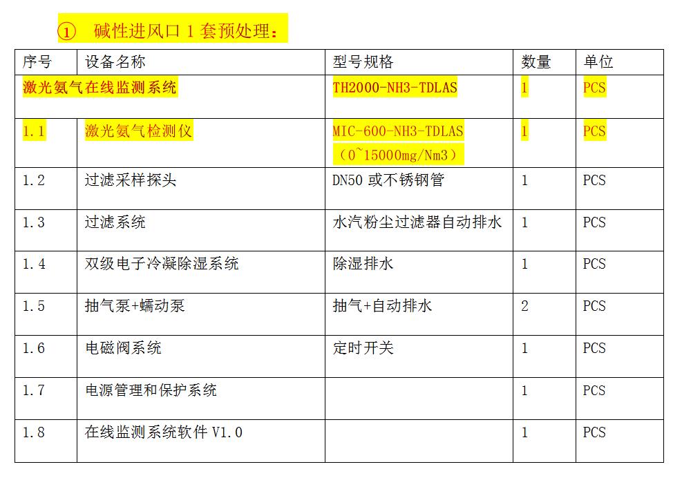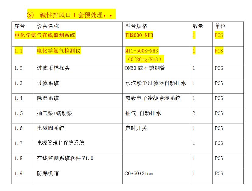 在線監(jiān)測預(yù)處理系統(tǒng) 1套(內(nèi)含對(duì)應(yīng)氣體檢測儀1臺(tái))