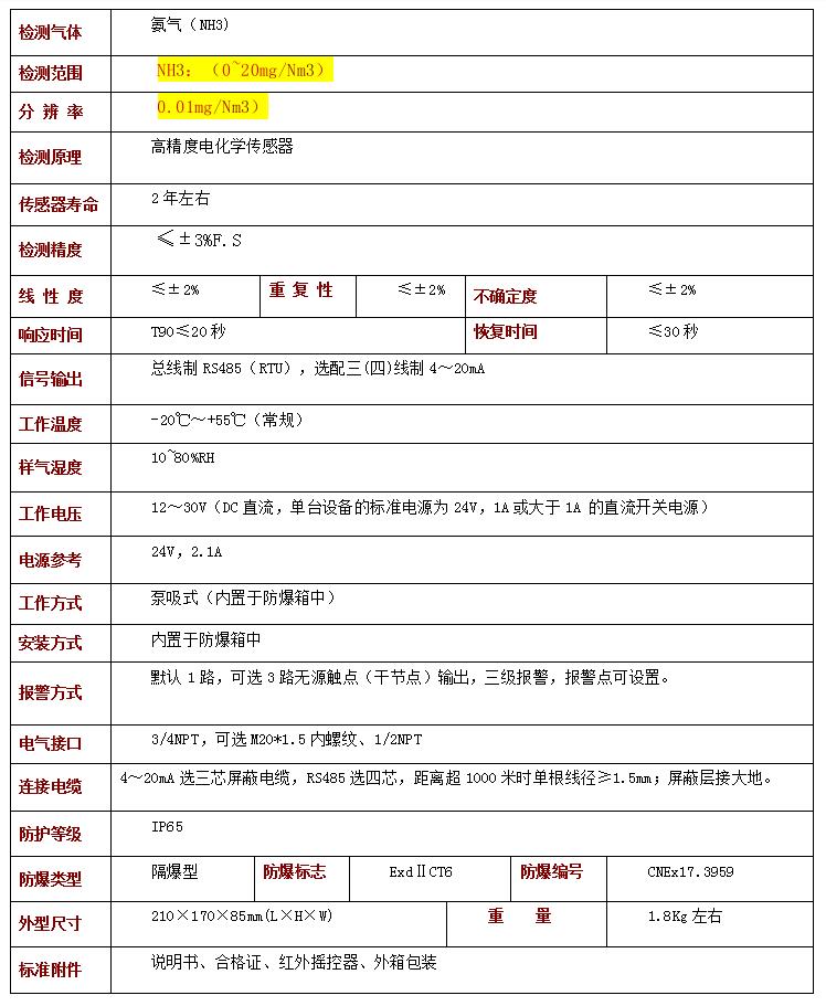 ★過濾前工況:氨氣檢測儀最大量程要求15000mg/Nm3,檢測點(diǎn):壓力3.5kpa,溫度:75度,濕度比較大,含水量90%RH。務(wù)必需要防爆裝置。