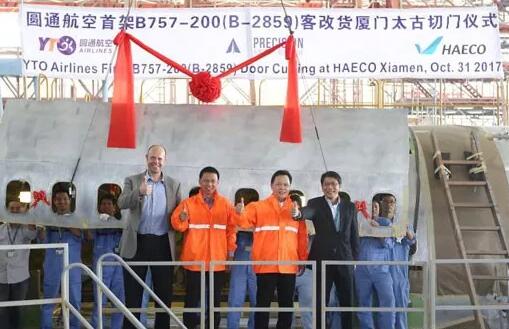 10月31日,圓通航空引進(jìn)的首架B757-200飛機(jī)在廈門太古第六號機(jī)庫舉行切門儀式。本架飛機(jī)將于今年12月下旬完成客改貨并投入航線營運(yùn),圓通航...