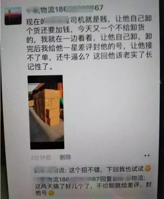 最近,筆者看到了一張圈內(nèi)人發(fā)的關(guān)于貨主公然辱罵并欺負(fù)貨車司機(jī)的朋友圈截圖。大體意思是,貨主要求司機(jī)卸貨,司機(jī)不答應(yīng),要求卸貨另外加錢,然后惹怒了貨主,致其對司機(jī)破口大罵不算,居然還要想點(diǎn)子“整死”司機(jī)。截圖如下,大家可以自行感受。