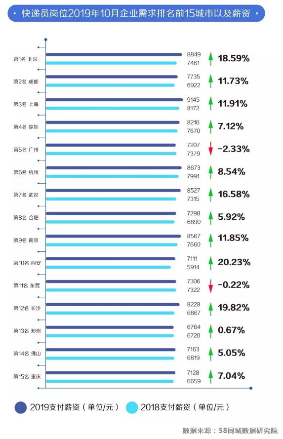 上海快遞員薪資達(dá)9145元,西安企業(yè)支付薪資增長超20%