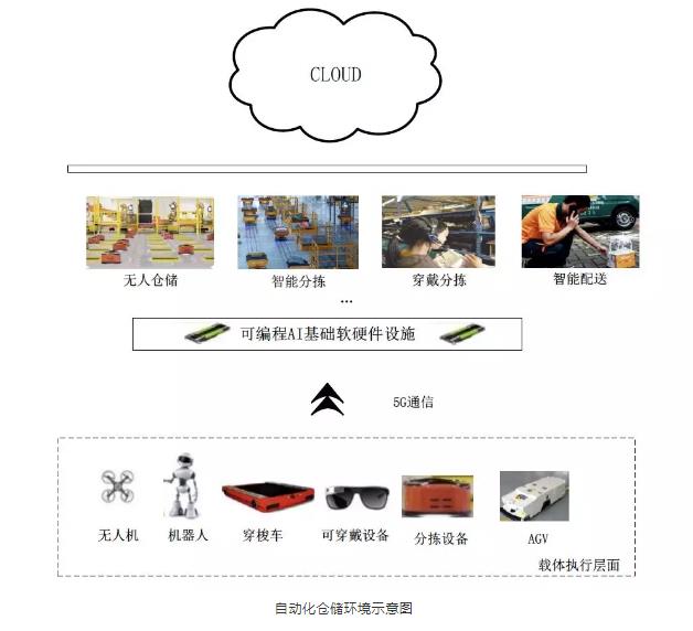 在新一代移動通信技術(shù)5G的推動下,倉儲環(huán)境的全面自動化變得更有希望。5G與人工智能技術(shù)的結(jié)合也是必然趨勢,很多機(jī)器人設(shè)備嵌入的硬件芯片在已有通信技術(shù)支撐下由于時(shí)延、能耗等問題往往不能發(fā)揮更多作用,因此5G的可靠性傳輸性能夠推動智能機(jī)器人的使用。