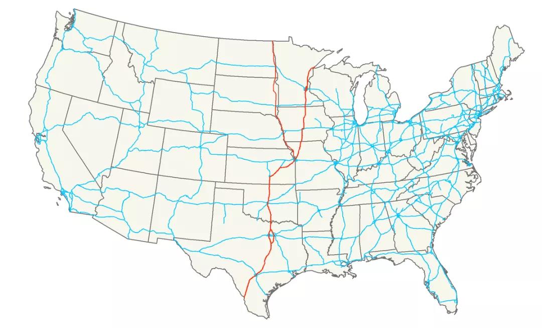 圖為美國(guó)從 1956 年開(kāi)始由艾森豪威爾總統(tǒng)主導(dǎo)下興建的跨洲高速公路網(wǎng)。這一舉措幫助美國(guó)經(jīng)濟(jì)在二戰(zhàn)后快速發(fā)展,直接對(duì)應(yīng)了美國(guó)上世紀(jì) 50~60 年代經(jīng)濟(jì)發(fā)展的 “黃金時(shí)代”。