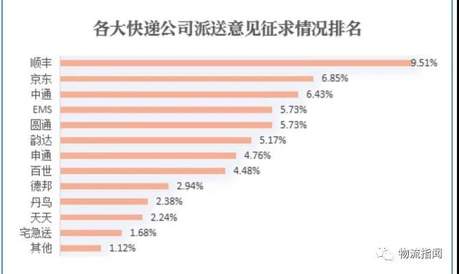 各大快遞公司派件服務(wù)評分方面,調(diào)查發(fā)現(xiàn),各大快遞公司派件服務(wù)評分大多快遞公司在投放快遞時(shí)有違《郵政法》規(guī)定,未按照名址投遞;各大快遞公司派送意見征求情況排名前五位依次為:順豐、京東、中通、EMS、圓通。超半數(shù)調(diào)查對象要求送貨上門時(shí),遭到過快遞員的拒絕。
