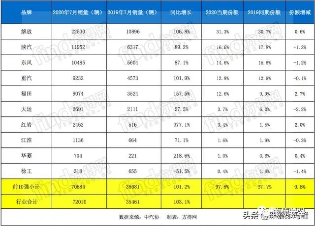 紅巖銷量暴漲3倍,在前10強中增速第一。數(shù)據(jù)顯示,7月,紅巖牽引車銷量為2462輛,同比暴漲377.1%,實現(xiàn)3倍以上增長,遠超行業(yè)增速,在前10強中增幅位于第一;市場份額為3.4%,比去年同期份額擴大2個百分點,地盤擴大明顯。