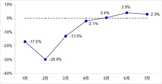 僅7月,完成貨運量41.2億噸,同比增長2.9%,連續(xù)3個月實現(xiàn)正增長,其中公路貨運量增長3.1%、水路貨運量下降0.3%。