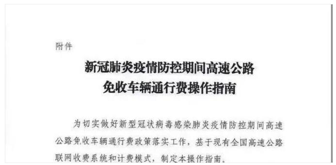 2月15日,交通運(yùn)輸部正式發(fā)布通知:2月17日零時(shí)起至疫情防控工作結(jié)束,全國(guó)收費(fèi)公路免收車輛通行費(fèi),暫定免費(fèi)時(shí)間到6月30日。后來,由于疫情管控良好,交通運(yùn)輸部2020年4月28日發(fā)布的公告,經(jīng)國(guó)務(wù)院批準(zhǔn),全國(guó)收費(fèi)公路將于2020年5月6日0時(shí)起恢復(fù)收費(fèi)。