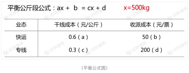 2017年,運聯(lián)率先在業(yè)內(nèi)提出了獨立的“大票零擔(dān)”的概念,并提出了單票300kg定為快運(小票零擔(dān))與大票零擔(dān)的邊界。如今,這一界定的邊界開始突破500kg,其背后的邏輯可以用運聯(lián)研究院的平衡公斤段公式來解釋。
