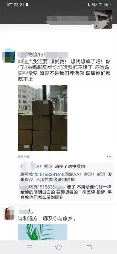 昨天一個(gè)朋友把這個(gè)朋友圈截圖發(fā)給我說(shuō),寫(xiě)點(diǎn)什么吧。今天我也在頭條上看到了相關(guān)信息,罵人的據(jù)說(shuō)是浙江義烏某三方物流公司的人,大概是某貨運(yùn)平臺(tái)的司機(jī)在做他們公司業(yè)務(wù)的時(shí)候向他收卸貨費(fèi)了,然后他就在朋友圈開(kāi)罵了。