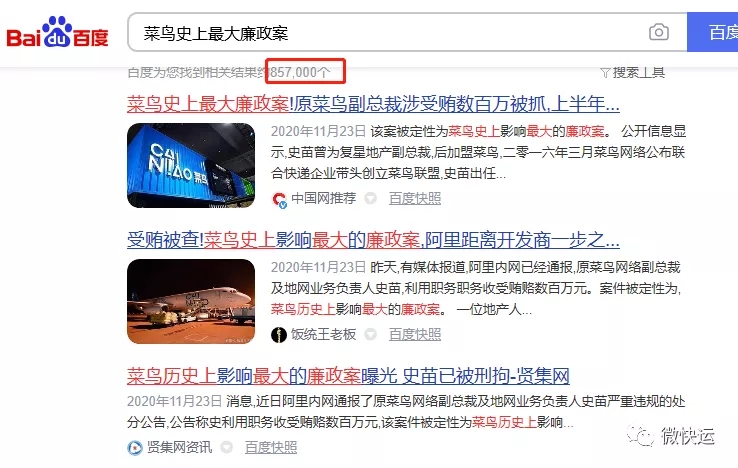 2020年11月22日,網(wǎng)傳菜鳥網(wǎng)絡原副總裁及地網(wǎng)業(yè)務負責人史苗利用職務收受賄賂數(shù)百萬元,該案件被定性為菜鳥歷史上影響最大的廉政案。菜鳥方面向中國證券報記者證實了此事,并回應稱:“廉政反腐是公司的底線,這沒有什么可回避的。”