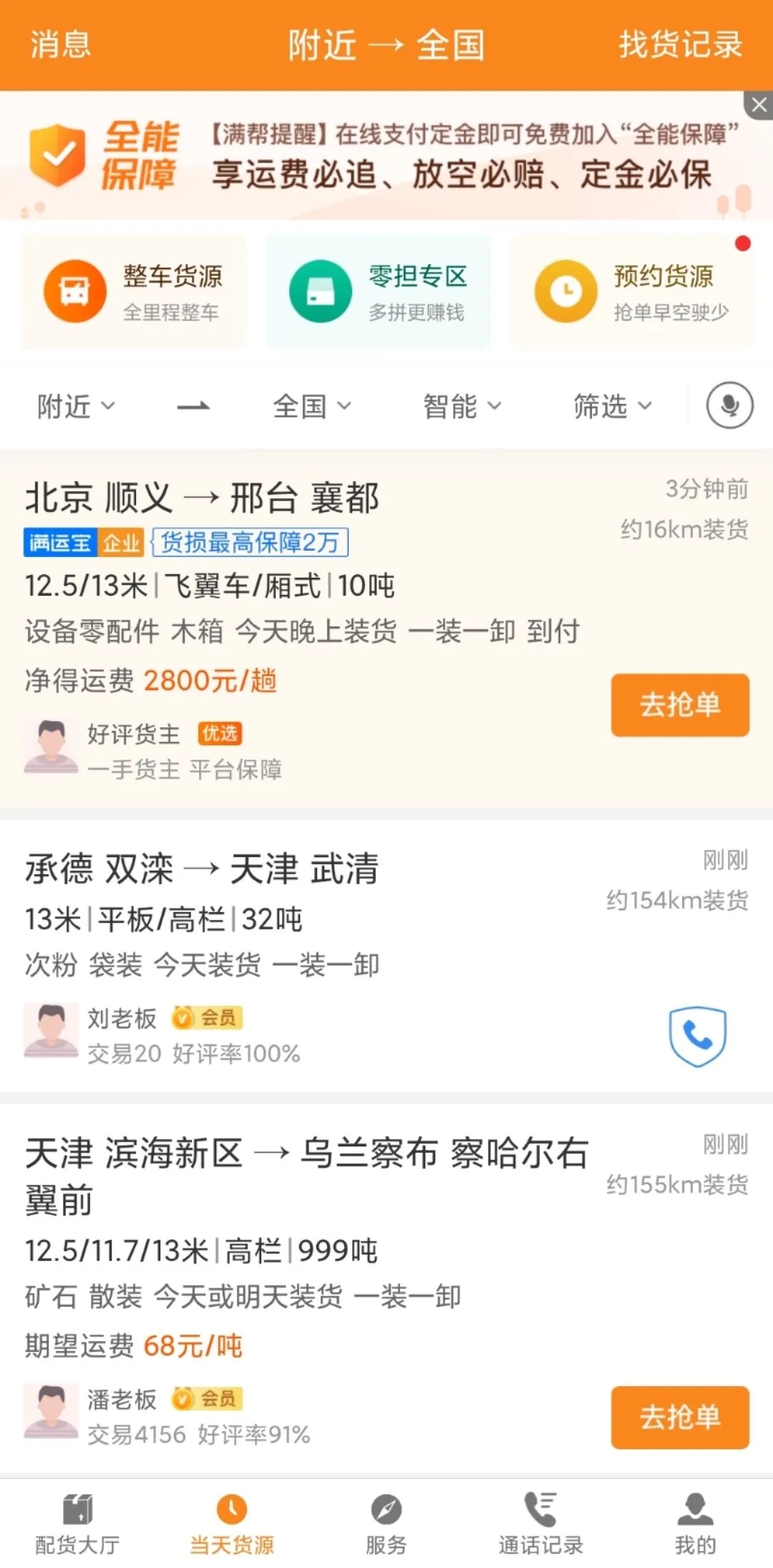 某貨運(yùn)App司機(jī)端界面,可以看到有固定的報(bào)價(jià),也可以打電話議價(jià)