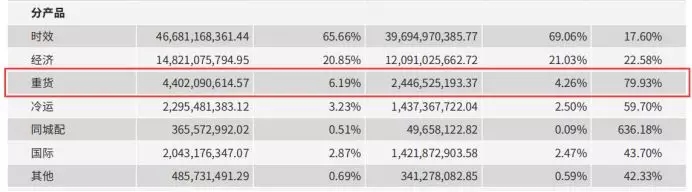 最近正好順豐發(fā)布了2017年年報,從年報中可以看出,順豐重貨業(yè)務(wù)表現(xiàn)搶眼,貨運輸營收44.02億元,增長79.93%,占總營收比達6.19%。